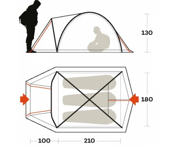 Матеріал зовнішнього тенту: Polyester 70D Diamond PU DWR PFC-Free, 2000 мм водяного стовпа, проклеєні шви, поліуретанова, водовідштовхувальна просочення без ПФС, має теплоізоляційні властивості, вага - 75 г /м²