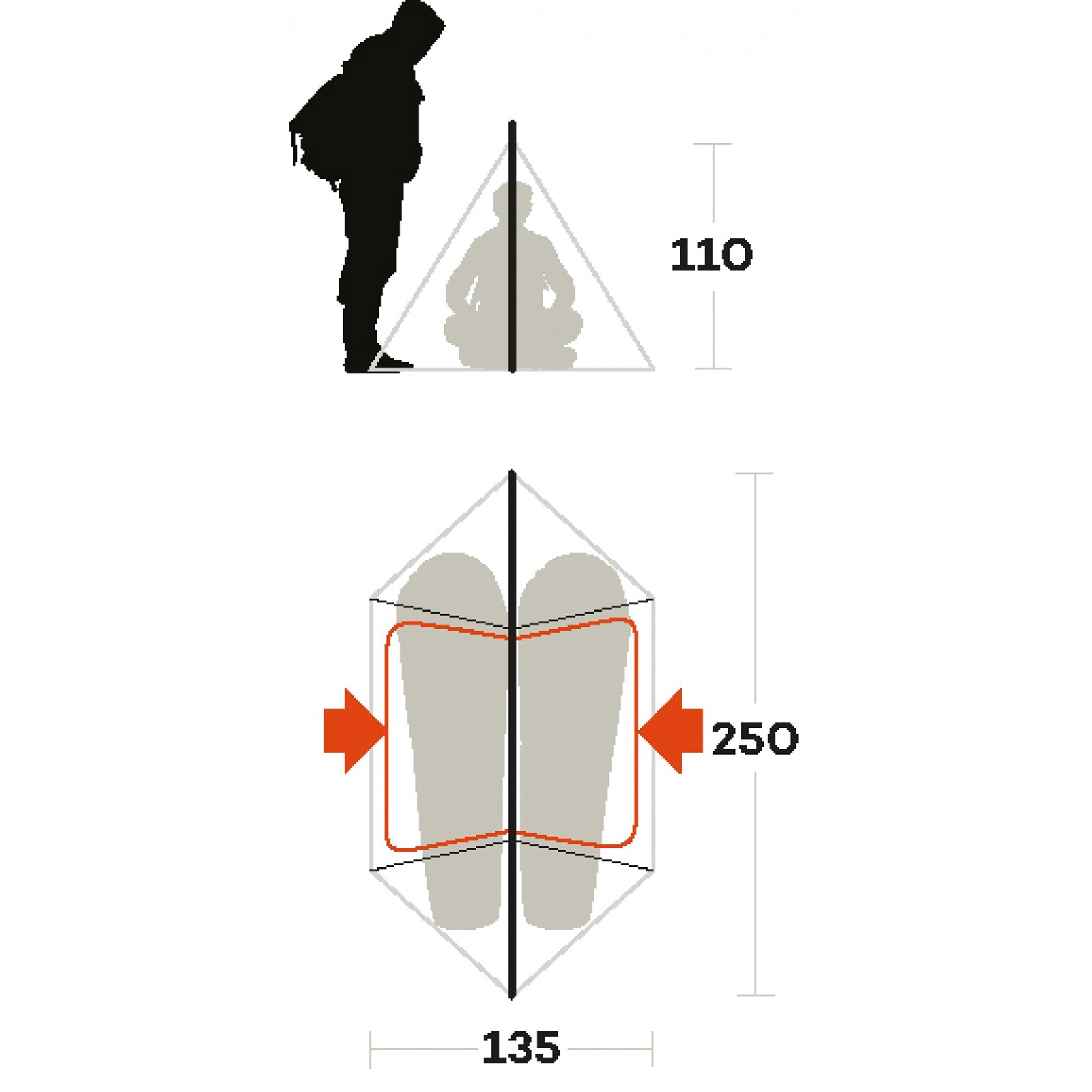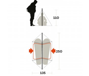 Матеріал зовнішнього тенту: Polyester 70D Diamond PU DWR PFC-Free, 2000 мм водяного стовпа, проклеєні шви, поліуретанова, водовідштовхувальна просочення без ПФС, має теплоізоляційні властивості, вага - 75 г /м²