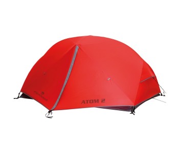 Намет Ferrino Atom 2 Red відноситься до серії найбільш легких наметів Ferrino Lite. Дана модель характеризується використанням ультралегкого матеріалу для тенту, з зовнішнім силіконовим і внутрішнім поліуретановим покриттям, що позитивно впливає на міцність і забезпечує довговічність водозахисних властивостей. Намет хороша для літнього альпінізму, велотуризму, а також буде цікава тим, хто любить легке спорядження. Ferrino Atom 2 Red має по одному тамбуру і по одному входу на персону з протилежних сторін, дозволяючи комфортно користуватися наметом, не обмежуючи один одного. Великий корисний внутрішній об'єм намети, обумовлений хабів конструкцією, в свою чергу так само сприяє додатковому комфорту в тривалому поході. При цьому намет може бути встановлена без розтяжок, а установка її потребують мінімум місця. Внутрішній намет на 75% складається з москітної сітки, її можна використовувати окремо від зовнішнього тенту, якщо вночі досить жарко і задушливо. Зовнішній тент і підлогу мають водозащиту 3000 мм в. ст., що є цілком достатнім, при правильній установці, щоб зберегти намет всередині сухий під час дощу середньої інтенсивності. Ефективна система вентиляції Camera Air доповнена двома вентиляційними вікнами, що допоможе уникнути утворення конденсату. Чохол намети і кілочки так само полегшені, їх загальна вага разом з ремкомплектом становить всього 50 гр.