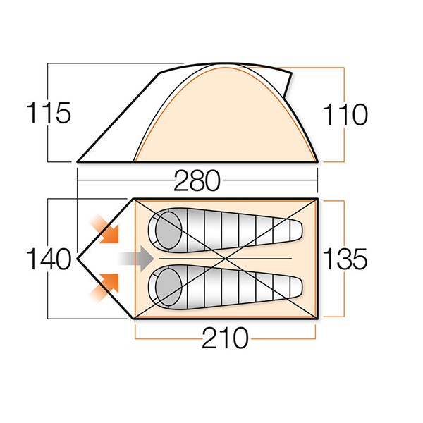 - Матеріал покриття: Protex® 70 D ( Polyester), 3000 мм водяного стовпа, проклеєні шви. Розроблено ексклюзивно для Vango.