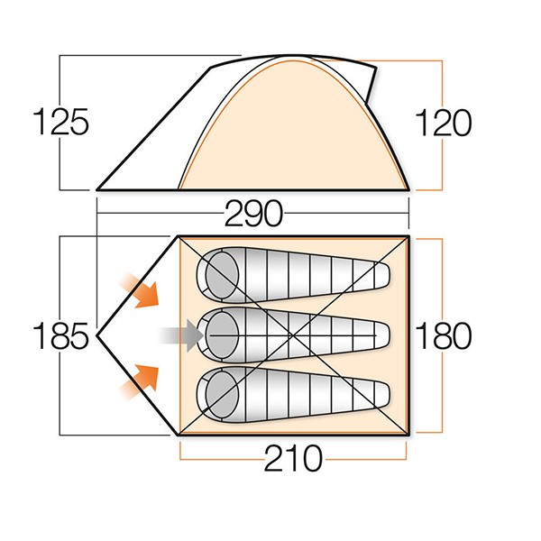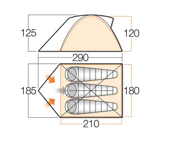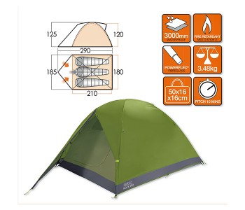 Туристична 3-х місцевий намет Rock 300 від Vango стане відмінним вибором для початківців туристів і людей, які ведуть активний спосіб життя.