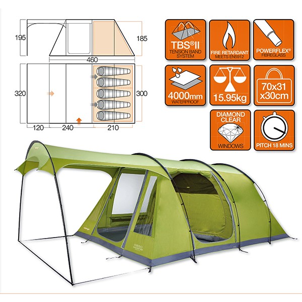 Кемпінгова 5-ти місний намет Calder 500 від Vango призначена для тривалого і комфортного відпочинку на природі.