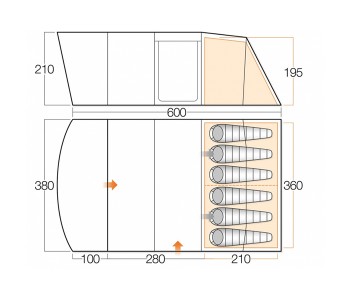 Просторий тамбур ідеально підходить для розміщення багажу чи організації кемпінгових кухні.