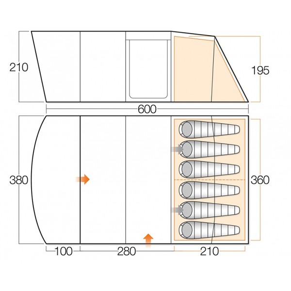 - Зовнішня намет (ДхШхВ), мм: 6000 х 3800 х 2100