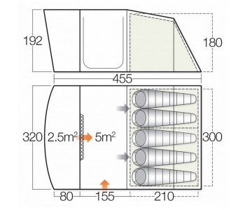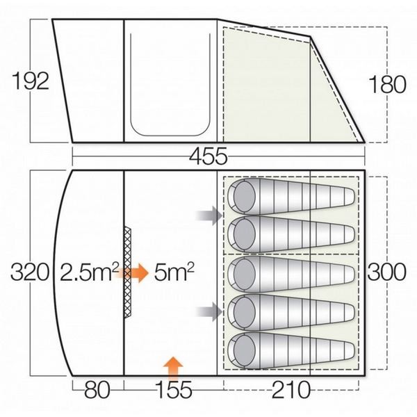 Кемпінгова 5-ти місний намет Avington 500 від Vango призначена для тривалого і комфортного відпочинку на природі. Патентірованний система від Vango TBS®II (Tension Band System) гарантує стабільність намети при вітрових навантаженнях. Просторий тамбур ідеально підходить для розміщення багажу чи організації кемпінгових кухні. Модель стане хорошим вибором для використання як в базовому таборі, так і для сімейного відпочинку на природі. Намети Vango відповідають всім вимогам безпеки відповідно до стандартів Європейського союзу EN5912.