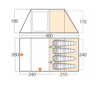 - Внутрішній намет (ДхШхВ), мм 2100 х 2400 х 1750