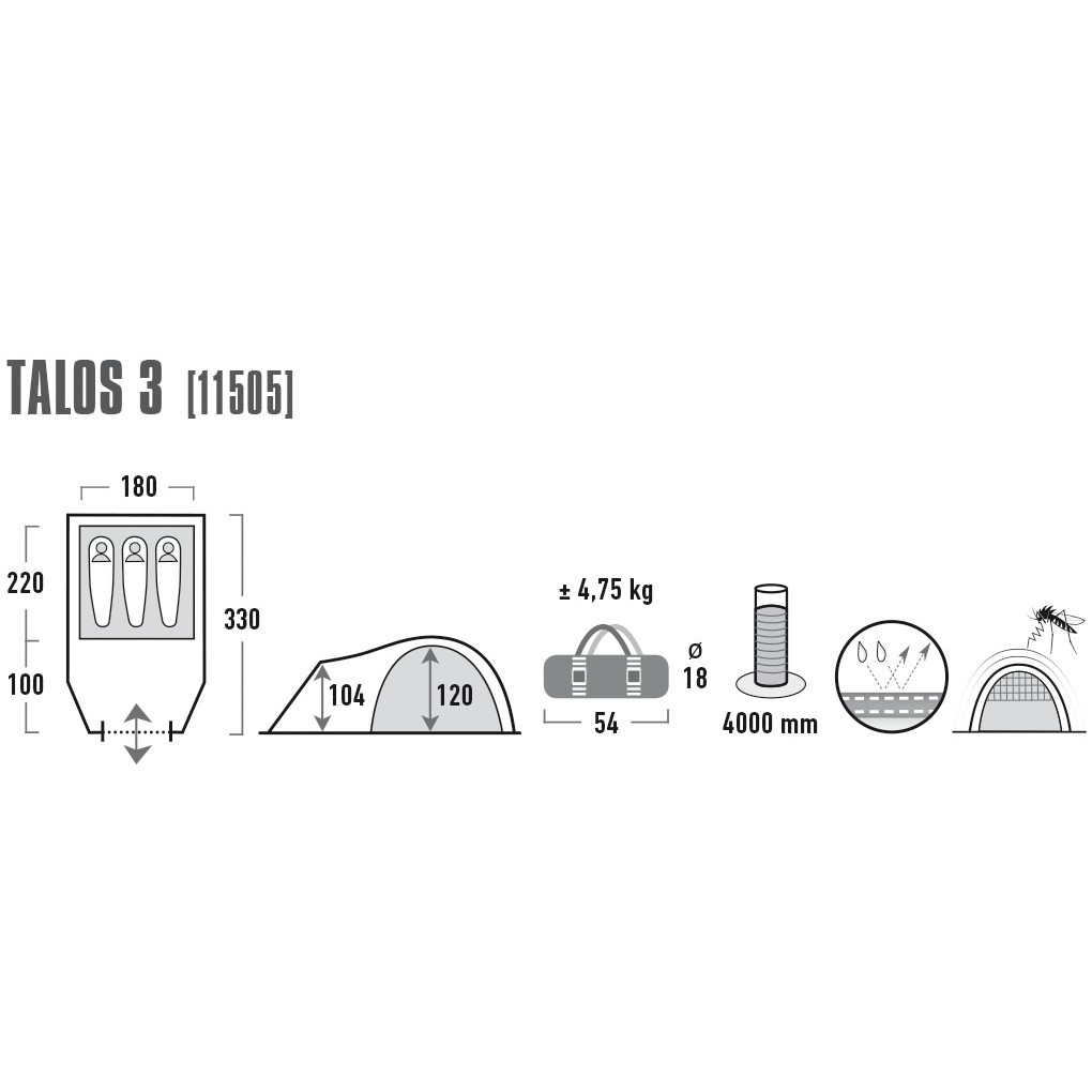 Туристична двошаровий, 3-ох місний намет для тривалих походів і кемпінгу. Зручний тамбур для зберігання спорядження. Вхід із захисною антимоскітної сіткою, продумана система вентиляції Vario vent control , проста установка.