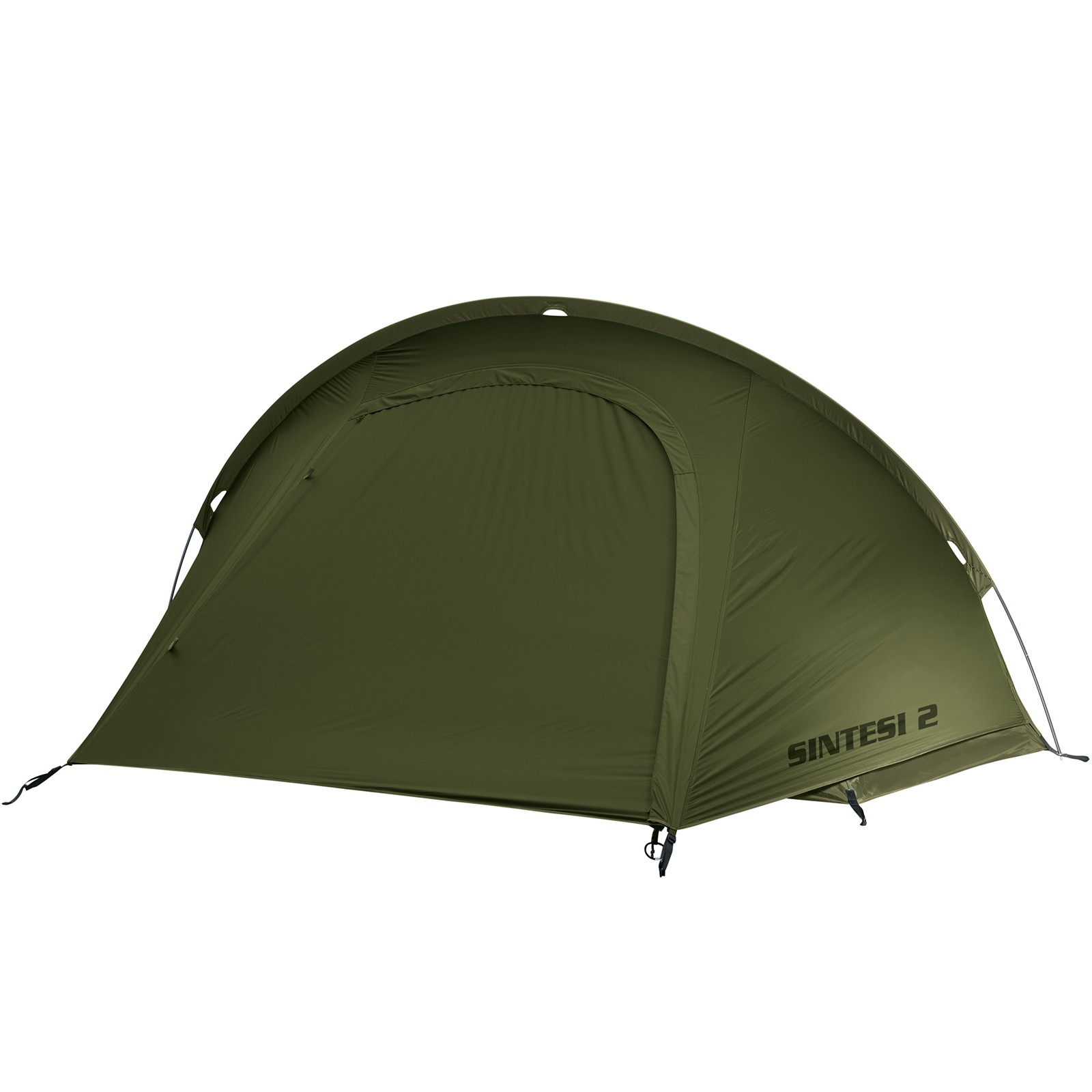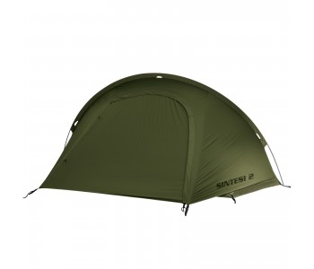 Ferrino Sintesi 2 Olive Green відноситься до серії наметів Ferrino Lite і є дійсно однією з найлегших двомісних наметів. Її вага в повній комплектації складає всього 800 грам в розрахунку на людину. Дана модель має підвищену до 8000 мм вод. ст. водонепроникність дна намету і найбільш підійде для змагань по парному легкоходному туризму, нетривалих походів і велотуризму. Тунельна конструкція всього з однією дугою забезпечує мінімальну вагу і мінімальний час установки і зборки. При всій своїй компактності, намет має вмместітельний тамбур. Водозахист зовнішнього тенту становить 3000 мм вод. ст., що вдвічі перевищує нормативні вимоги до водозахисним наметів і цілком вистачає, щоб зберегти намет всередині сухий під час дощу середньої інтенсивності. Намет має два вентиляційних вікна і вхід, додатково закривається москітною сіткою, таким чином ефективне провітрювання здійснюється без проблем і та ночівля в літню спеку не викличе дискомфорту.