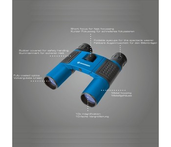 Бінокль Bresser Topas 10x25 зручно складається до самих компактних розмірів, поміщається практично в будь-яку кишеню одягу або рюкзака, що дуже зручно під час спостережень спортивних змагань, подорожей або захоплюючих прогулянок на природі, коли бінокль повинен бути під рукою. Призма Roof дозволяє максимально зменшити вагу і габарити бінокля, зберігши при цьому високі оптичні характеристики. Призми виготовлені зі скла BK7 з проясненням, лінзи також мають просвітлення всіх оптичних поверхонь. На додаток бінокль оснащений складаються гумовими наглазниками окулярів, нашийним ременем і чохлом для зберігання.