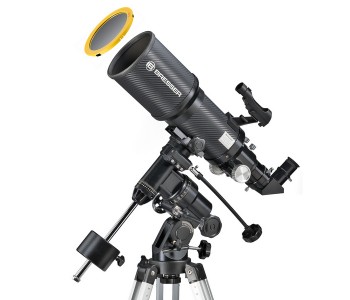Відмінною особливістю даної моделі є наявність в базовій комплектації сонячного фільтра, завдяки чому телескоп тепер може бути використаний для денних спостережень сонячної активності. Телескоп Bresser Polaris Solar 102/460 EQ3 (carbon) - це короткофокусний рефрактор, що забезпечує приголомшливу светосилу. Телескоп досить компактний і легкий для рефрактора з подібним діаметром об'єктива, він може бути без утруднення поміщений в туристичний рюкзак і переміщатися разом з Вами в пошуках ідеального місця для спостережень. Крім того комплектація дозволяє зняти спостереження на камеру смартфона, для чого в комплекті з телескопом поставляється спеціальний адаптер.
