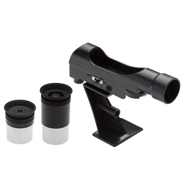 В комплектацію входить адаптер для камери смартфона (планшета). Адаптер кріпиться на обраному окулярі і дозволяє проводити фото і відеозйомку основний або фронтальною камерою гаджета. Гладка тильна сторона смартфона надійно кріпиться за допомогою безлічі присосок адаптера (в разі рифленою тильній поверхні смартфона рекомендується використовувати фронтальну камеру). Набір аксесуарів полегшить спостереження і зробить їх більш цікавими і докладними. У комплектацію крім адаптера для камери смартфона (планшета), входять два окуляри, поворотна карта зоряного неба і програмне забезпечення.