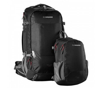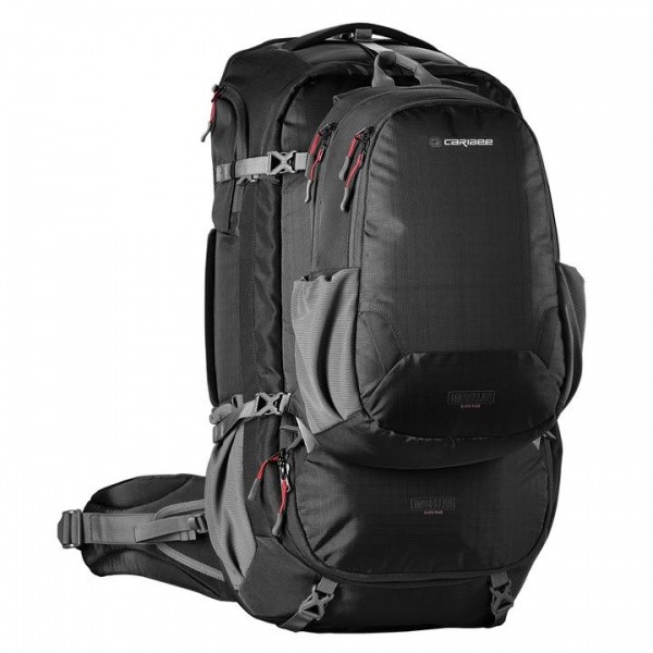 Сумний багатоцільовий рюкзак Zip Off на блискавки: матеріал - 100% Polyester; спинка з м'якою пенополиуретановой підкладкою; плечові лямки регульовані по висоті, анатомічної форми з м'якої пенополиуретановой підкладкою обшиті дихаючої сітчастої тканиною мають два карабіна для ключів; ручка для транспортування; два відкритих бічні сітчасті кишені для пляшок.