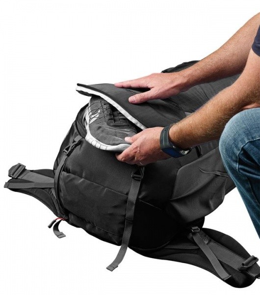 Передній відділ в нижній частині рюкзака з можливістю ізолювати стяжкою нижній відсік від основного відділення для транспортування взуття