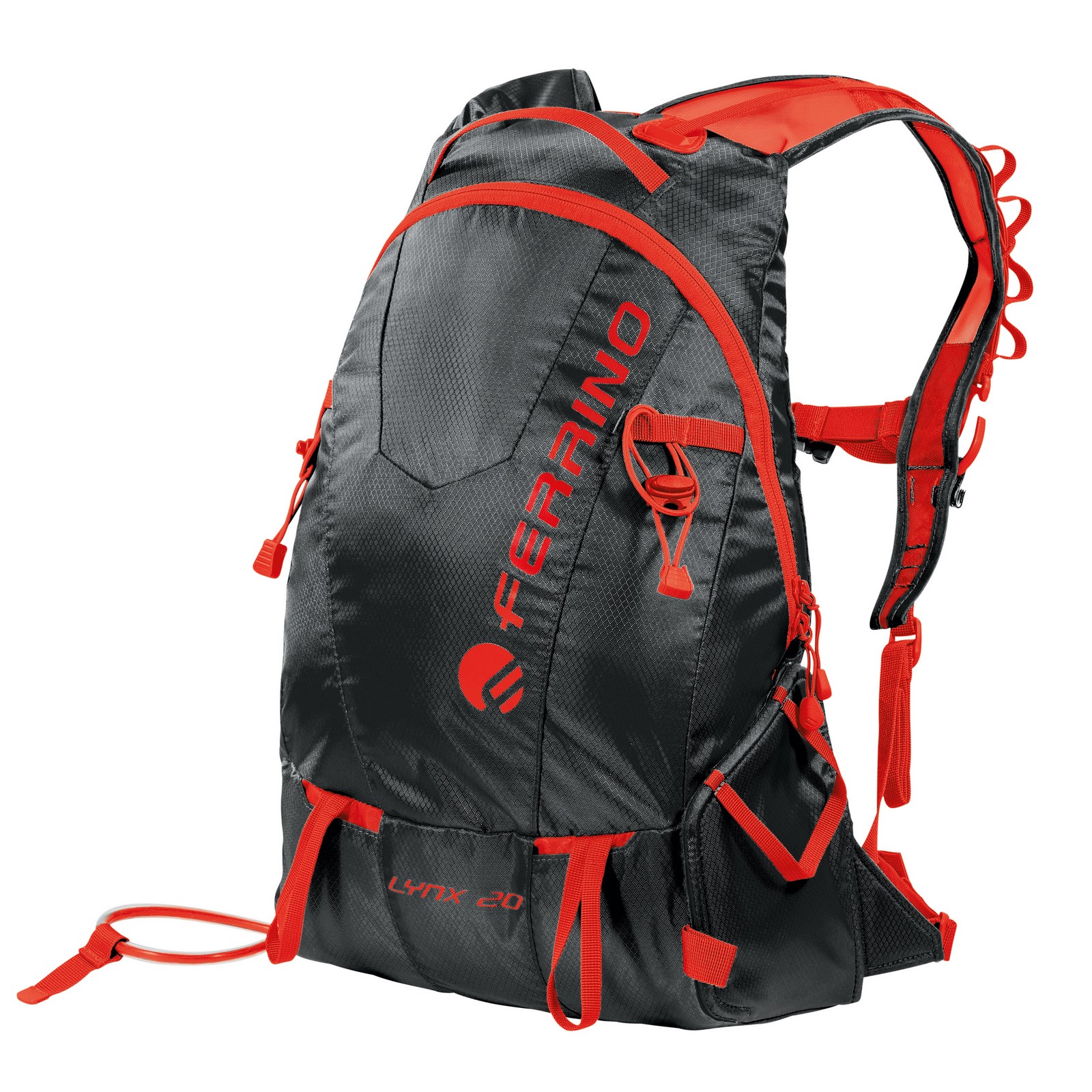 Серія рюкзаків Ferrino Lynx призначена в першу чергу для професійних занять і змагань з скі-альпінізму, скітур, а також для інших лижних дисциплін і занять альпінізмом. Ferrino Lynx продумані до дрібниць і мають ряд властивих тільки даними рюкзаків конструктивних відмінностей, таких як спеціально розроблене швидкознімне кріплення для лиж, система швидкого скидання рюкзака, петля для зчіпки і, при необхідності, буксирування другого лижника, спеціальне відділення для альпіністських кішок і відділення з фіксаторами для лавинної лопати і лавинного зонда. Крім настільки спеціалізованих конструктивних рішень, Ferrino Lynx 20 Black /Red повністю сумісний з гідратаціонной системою, має знімний стегновий пояс, запасну петлю для кріплення друге лиж, свисток на нагрудній стягуванні, зовнішні петлі для карабінів і знімні фіксатори для льодоруба або трекінгових палиць. Внутрішній простір рюкзака також оптимізовано для розміщення і фіксації різного спорядження. Ferrino Lynx 20 Black /Red має малу вагу, завдяки використанню легкого матеріалу, вентильований спинку, світловідбивачі на фасаді, і оснащений надійною фурнітурою від кращих виробників.