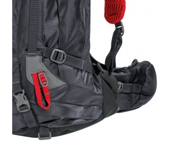 Trekking poles holders (2) - тримачі для трекінгових палиць розміщуються у верхній і нижній частині фасаду Трекінгові рюкзака і, як правило, являють собою комбінацію нижніх петель і верхніх стяжних еластичних шнурів з фіксатором. Рідше нижні петлі замінюються такими ж стяжними шнурами. Такі власники дозволяють надійно фіксувати трекінгові палки і не завантажувати ними внутрішній простір рюкзака. Даний рюкзак має дві пари кріплень для трекінгових палиць, поєднаних з кріпленнями для льодорубів.