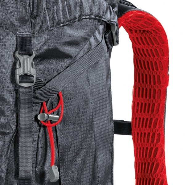 Ice-axe holders (2) - тримачі для льодорубів розміщуються у верхній і нижній частині фасаду альпіністського рюкзака і, як правило, являють собою комбінацію нижніх довгих петель або посилених шнурів і верхніх стяжних еластичних шнурів з фіксатором або невеликих стяжок на текстильній застібці velcro. Такі власники дозволяють надійно фіксувати льодоруби і не завантажувати ними внутрішній простір рюкзака. При необхідності власники можуть бути використані і для кріплення трекінгових палиць. Даний рюкзак має дві пари кріплень для льодоруба, суміщених з кріпленнями для трекінгових палиць