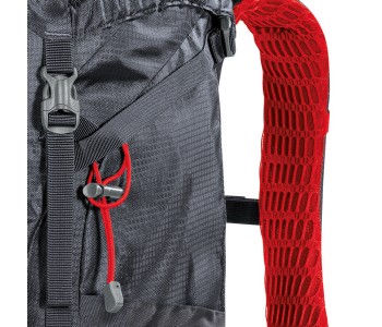 Ice-axe holders (2) - тримачі для льодорубів розміщуються у верхній і нижньої частини фасаду альпіністського рюкзака і, як правило, являють собою комбінацію нижніх довгих петель або посилених шнурів і верхніх стяжних еластичних шнурів з фіксатором або невеликих стяжок на текстильній застібці velcro. Такі власники дозволяють надійно фіксувати льодоруби і не завантажувати ними внутрішній простір рюкзака. При необхідності власники можуть бути використані і для кріплення трекінгових палиць. Даний рюкзак має дві пари кріплень для льодоруба, суміщених з кріпленнями для трекінгових палиць