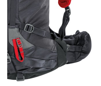 Trekking poles holders (2) - тримачі для трекінгових палиць розміщуються у верхній і нижній частині фасаду Трекінгові рюкзака і, як правило, являють собою комбінацію нижніх петель і верхніх стяжних еластичних шнурів з фіксатором. Рідше нижні петлі замінюються такими ж стяжними шнурами. Такі власники дозволяють надійно фіксувати трекінгові палки і не завантажувати ними внутрішній простір рюкзака. Даний рюкзак має дві пари кріплень для трекінгових палиць, поєднаних з кріпленнями для льодорубів.