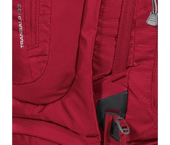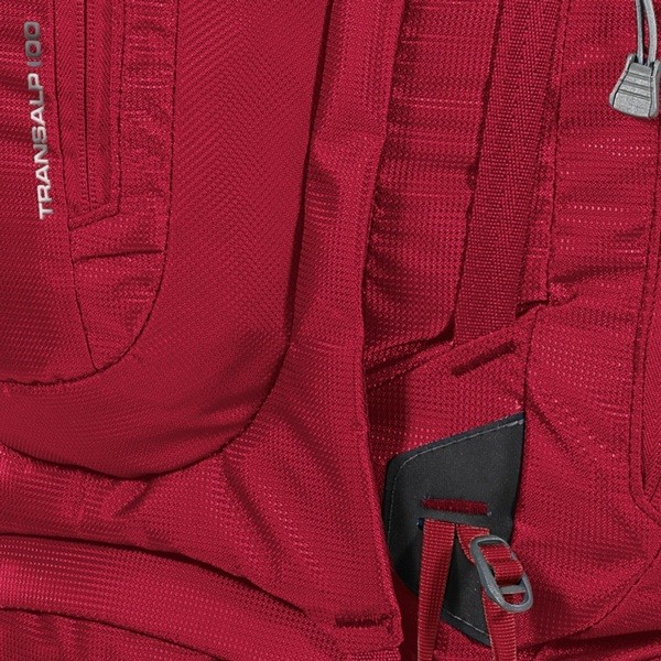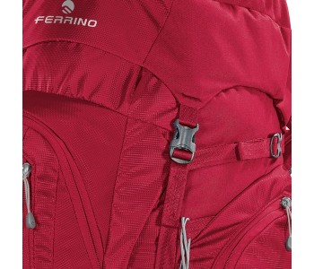 Серія експедиційних рюкзаків Ferrino Transalp відрізняється великим об'ємом і поруч конструкційних рішень підвищують зручність і надійність рюкзака для великої кількості спорядження. Підвісна система з безступінчатим регулюванням має подвійну фіксацію, стегнах пояс широкий зі збільшеною товщиною пенополиуретановой підкладки для більшого комфорту при максимальному завантаженні. У двох точках з найбільшим навантаженням рюкзак посилений вставками з міцного матеріалу Hypalon®. Бічні стропи зміщені до центру і подовжені, дозволяючи зафіксувати більш об'ємну намет. Додаткове спорядження можна кріпити за допомогою пари нижніх стяжки і окремих строп, що поставляються в комплекті. Для палиць і льодорубів є пара окремих кріплень. Речі першої необхідності можна розмістити в дев'яти кишенях різного об'єму (два на фасаді, два з боків, три в клапані і два на поясі). При повному завантаженні стає вкрай важливим наявність двох фронтальних входів, що полегшують упаковку і розпаковування необхідних речей. Усередині рюкзак дуже просторий, нижній відсік відокремлений перегородкою, туди без проблем поміщається об'ємний зимовий спальник. Обсяг верхнього відсіку може варіюватися за допомогою витяжного клапана. Рюкзак повністю адаптований під питну систему. У нижньому потаємній кишені розміщений об'ємний захисний чохол від дощу.