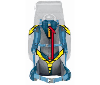 Double Ergo Adjustment Back - підвісна система з безступінчатим зміною висоти підвісу рюкзака, що дозволяє легко і швидко змінювати, точно і надійно фіксувати висоту підвісу рюкзака. Як каркас використана П-образна алюмінієва пластина і пластикова панель з центральною алюмінієвою пластиною анатомічної форми. Вентиляція спинки здійснюється за допомогою широкого Y-образного каналу, сформованого м'якими об'ємними пенополіуретановим валиками, обшитими дихаючої сітчастої тканиною.