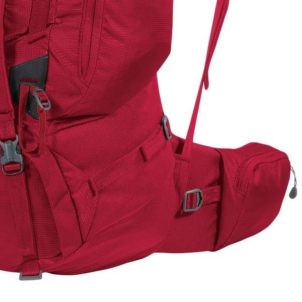 Trekking poles holders (2) - тримачі для трекінгових палиць розміщуються у верхній і нижній частині фасаду Трекінгові рюкзака і, як правило, являють собою комбінацію нижніх петель і верхніх стяжних еластичних шнурів з фіксатором. Рідше нижні петлі замінюються такими ж стяжними шнурами. Такі власники дозволяють надійно фіксувати трекінгові палки і не завантажувати ними внутрішній простір рюкзака. Даний рюкзак має дві пари кріплень для трекінгових палиць, поєднаних з кріпленнями для льодорубів.