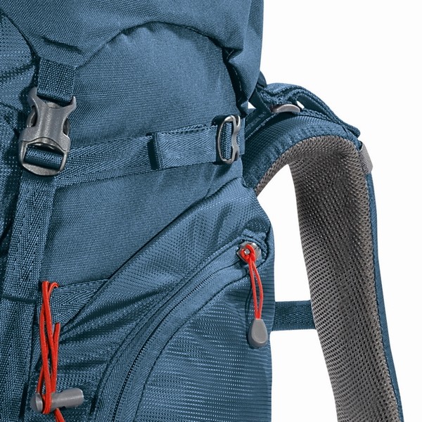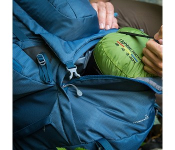 Side Compression - бічні е компресійні стяжки рюкзака можуть використовуватися для кріплення з боків рюкзака такого спорядження, як туристичний килимок, палатка або трекінгові палиці, що дуже важливо, коли внутрішній простір рюкзака вже зайнято. Також компресійні стяжки можуть використовуватися за призначенням для утяжки і зменшення зовнішнього обсягу запакованого рюкзака. У даній моделі бічні стяжки зміщені до центру фасаду для фіксації більш об'ємного спорядження.