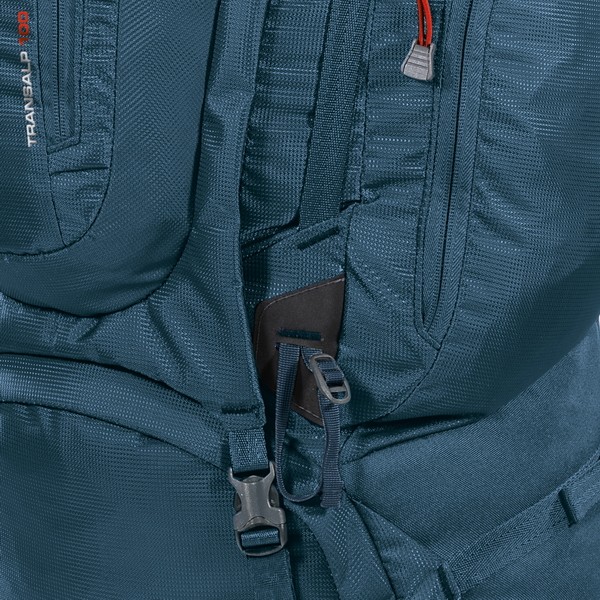 Trekking poles holders (2) - тримачі для трекінгових палиць розміщуються у верхній і нижній частині фасаду Трекінгові рюкзака і, як правило, являють собою комбінацію нижніх петель і верхніх стяжних еластичних шнурів з фіксатором. Рідше нижні петлі замінюються такими ж стяжними шнурами. Такі власники дозволяють надійно фіксувати трекінгові палки і не завантажувати ними внутрішній простір рюкзака. Даний рюкзак має дві пари кріплень для трекінгових палиць, поєднаних з кріпленнями для льодорубів.