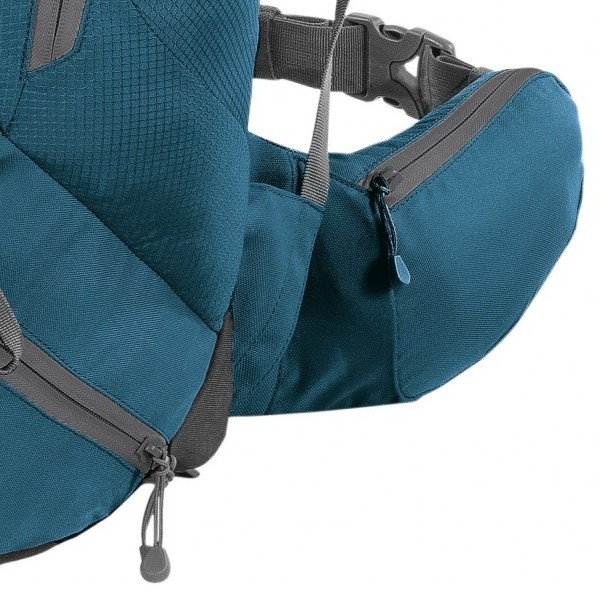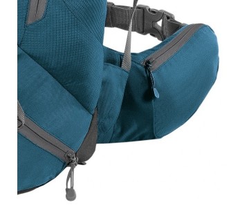 Trekking poles holders (2) - тримачі для трекінгових палиць розміщуються у верхній і нижній частині фасаду Трекінгові рюкзака і, як правило, являють собою комбінацію нижніх петель і верхніх стяжних еластичних шнурів з фіксатором. Рідше нижні петлі замінюються такими ж стяжними шнурами. Такі власники дозволяють надійно фіксувати трекінгові палки і не завантажувати ними внутрішній простір рюкзака. Даний рюкзак має дві пари кріплень для трекінгових палиць, поєднаних з кріпленнями для льодорубів.