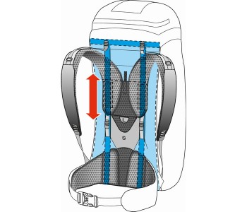 Double Ergo Adjustment Back - підвісна система з безступінчатим зміною висоти підвісу рюкзака, що дозволяє легко і швидко змінювати, точно і надійно фіксувати висоту підвісу рюкзака. Як каркас використана П-образна алюмінієва пластина і пластикова панель. Вентиляція спинки здійснюється за допомогою широкого Y-образного каналу, сформованого м'якими об'ємними пенополіуретановим валиками, обшитими дихаючої сітчастої тканиною.