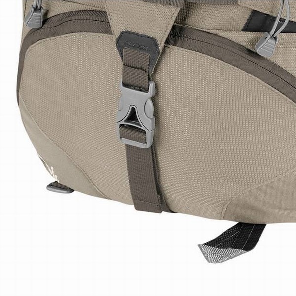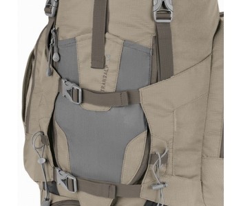 Side Compression - бічні е компресійні стяжки рюкзака можуть використовуватися для кріплення з боків рюкзака такого спорядження, як туристичний килимок, палатка або трекінгові палиці, що дуже важливо, коли внутрішній простір рюкзака вже зайнято. Також компресійні стяжки можуть використовуватися за призначенням для утяжки і зменшення зовнішнього обсягу запакованого рюкзака. У даній моделі бічні стяжки зміщені до центру і об'єднані для фіксації об'ємного спорядження.