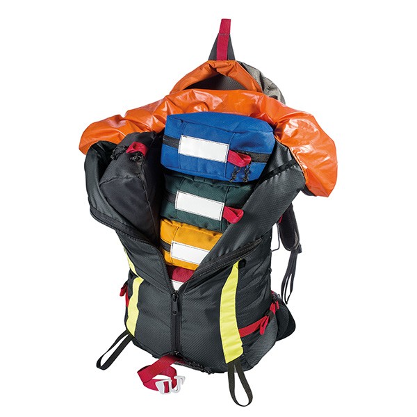 Sar 40 Black дійсно унікальний рюкзак, який в першу чергу призначений для проведення рятувальних робіт в горах, а також для занять альпінізмом. Рюкзак укомплектований чотирма чохлами різних кольорів, призначеними для упаковки інвентарю для проведення рятувальних робіт, а також чохлом для альпіністських кішок. Кожен чохол, як і сам рюкзак, має ярлик, на якому можна робити написи про вміст. Доповнює продуману систему упаковки вертикальний фронтальний вхід рюкзака. У надзвичайній ситуації таке конструктивне рішення дозволить заощадити дорогоцінні хвилини на пошук необхідного інвентарю. Основний упор в конструкції зроблений на бездоганну надійність. Для цього використані найнадійніші матеріали і фурнітура, яка дозволяє легко розстібати необхідні блискавки і кріплення навіть при морозі і обмерзання. Внутрішній простір рюкзака регулюється за допомогою витяжного клапана, адаптоване під питну систему і організовано для розміщення максимальної кількості спорядження. Система підвісу складається з анатомічного каркаса і м'якою спинки, що забезпечує зручну посадку рюкзака і вентиляцію спини. У верхньому клапані є два містких кишені з карабіном для ключів. Зовнішні стяжки і кріплення дозволяють прикріпити до рюкзака лижі, каску, трекінгові палки, лавинний зонд, лавинную лопату, льодоруби і багато іншого спорядження. З метою безпеки рюкзак укомплектований свистком, має таблицю подачі сигналів SOS і яскраві смуги на фасаді для ідентифікації. Незважаючи на призначення, всі конструктивні рішення роблять рюкзак більш ніж зручним і для аматорських занять альпінізмом. При виході великої групи на складний маршрут буде дуже до речі мати хоч один такий рюкзак на групу.