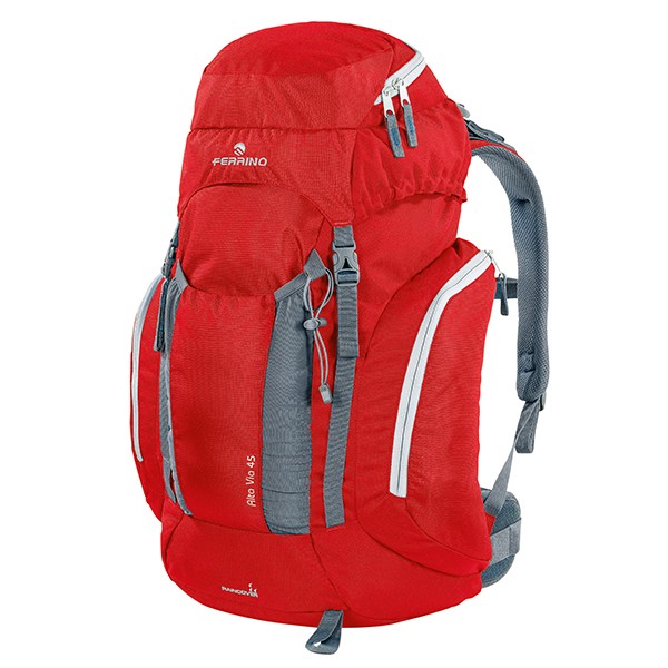 Ferrino Alta Via - серія легких хайкінгових рюкзаків, що забезпечують максимальну місткість речей при одно-дводенних походах. Широкий формат рюкзака дозволить розмістити всередині спальник, а при необхідності і намет. Великі бокові кишені вміщають півторалітрову пляшку з водою, хоча необхідний запас води можна розмістити в питній системі (купується окремо) під яку адаптований рюкзак. Підвісна система рюкзака не дозволяє стикнутися спині зі спинкою рюкзака, завдяки чому забезпечує найвищий рівень вентиляції. Захисний чохол від дощу входить в комплект і розміщується в потаємному нижньому кишені. Фасадний кишеню має еластичні вставки і при необхідності трохи розтягується. Карман на клапані має блискавку з подвійним замком і може розщіпатися з будь-якого боку. На фасаді є кріплення для трекінгових палиць, куди в зимовому поході може бути закріплений і льодоруб.