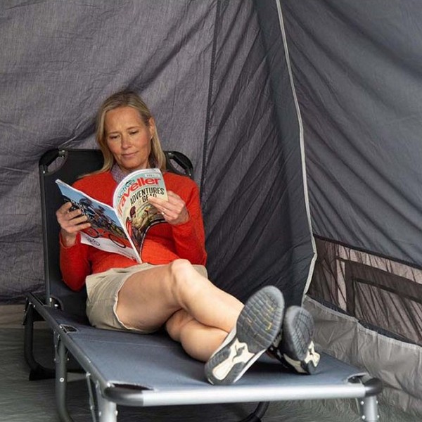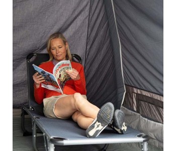 Серія кемпінгових ліжок Vango Laze повністю виправдовує свою назву, надаючи користувачу широкий вибір варіантів відпочинку на ній. П'ять фіксованих положень нахилу спинки забезпечать оптимально положення при читанні книги, прийнятті солечного ванн, під час сну або просто під час відпочинку на природі. Практичність конструкції полягає в тому, що відкритий каркас ніжок дозволяє розміщувати під ліжком велику кількість речей з метою економії місця в наметі або трейлері. Каркас із сталі і алюмінію ідеально поєднує міцність і невелика вага. Vango Laze Standart Granite Grey - вирішує відразу кілька завдань, виконуючи функції крісла, ліжка і шезлонга.