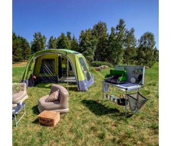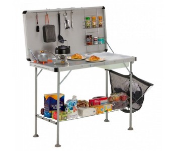 Відпочинок в наметовому містечку не обходиться без приготування їжі. Похідна кухня Vango Cuisine дозволить прискорити процес приготування їжі, зробивши його більш зручним і організованим. Кухня має вертикальну і горизонтальну полицю для зберігання посуду і продуктів, гачки для столових приладів, резервуар для миття посуду, бічний відсік для сміття, а також довгу алюмінієву стільницю. Особливо стійкий дизайн ніжок забезпечує значну стабільність похідної кухні навіть на нерівному грунті. Маючи в своєму розпорядженні цим широким функціоналом, кухня компактно складається за формою прямокутного валізки, зручного для транспортування і зберігання. Vango Cuisine створить бажаний рівень комфорту, де б ви не були, будь-то в кемпінгу, на дачі, або просто на відпочинок на природі.