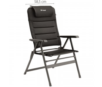 Кемпінговий стілець Outwell Grand Canyon поєднує в собі швидковисихаючу набивання з сітчастою тканиною Textilene стильного чорного кольору. Стілець має регульований знімний підголівник і покритий водовідштовхувальним матеріалом, щоб не допустити вбирання води наповнювачем, якщо раптом потрапить під дощ.