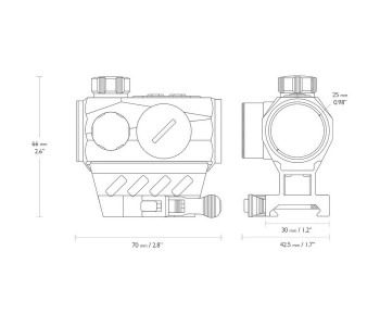 Приціл оснащений двома знімними кріпленнями для установки на прицільні планки типу Weaver /Picatinny. Високопрофільна кріплення має швидкознімний механізм, так як має на увазі установку на гвинтівках, де може відбуватися періодична зміна колліматроного прицілу на оптичний. Низькопрофільна монтування на увазі установку на пістолети, і з цієї причини вона не має швидкоз'ємного механізму, а вимагає фіксації за допомогою інструменту. Закриті барабани введення поправок по вертикалі і горизонталі дозволяють проводити регулювання пальцями без спеціального інструменту, і мають ціну кліка 1 МОА.