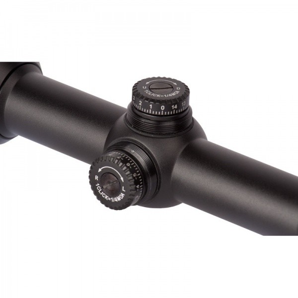 - Ціна ділення регулювання механізму поправок, кут. хв. 1/4 (0.25 MOA) @ 100 yds