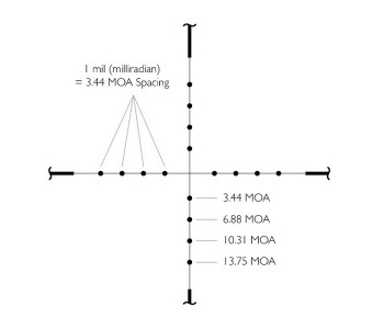 Mil Dot - одна з найбільш універсальних прицільних сіток, всі компоненти цієї сітки мають строго регламентовані розміри, відстані між усіма елементами також регламентовані. Завдяки цьому не проблема визначити відстань до цілі, прийнявши при цьому правильну поправку на вітер і визначити траєкторію польоту і падіння кулі. Даний Mil Dot вірний при 10-кратному збільшенні. Для інших збільшень лінійні і кутові розміри визначаються методом інтерполяції, або за спеціальними таблицями. Персональну адаптацію сітки під конкретне зброю і тип снаряда дозволить зробити безкоштовний балістичний Калькулятор.