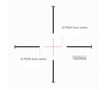 - Прицільна сітка: 30/30 Centre Cross IR (гравірована)