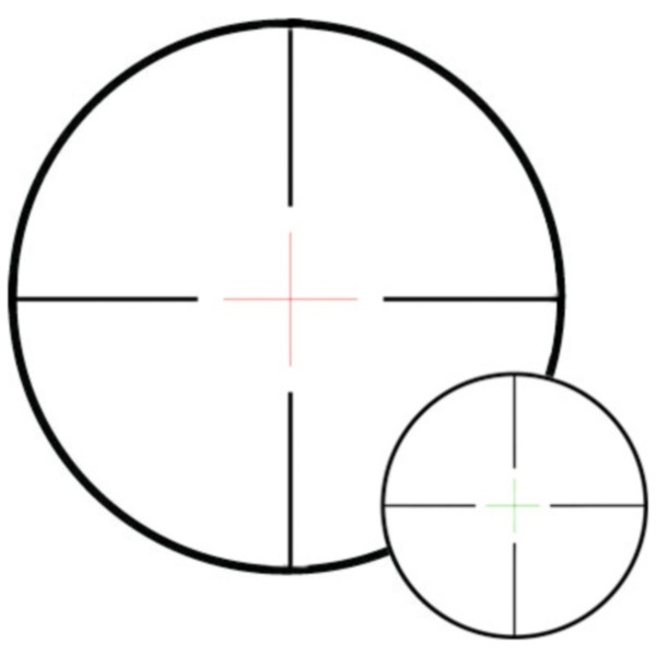 - Підсвічування прицільної сітки: червона /зелена, регульована, по 5 рівнів яскравості для кожного кольору