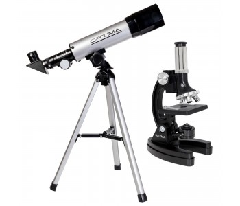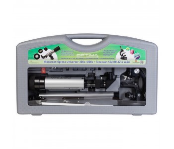Подарунковий набір Optima Universer - це не тільки телескоп і мікроскоп, але і маса додаткових корисних аксесуарів, які створять захоплюючу ігрову обстановку для дитини. Разом з тим навчальний набір відкриє вашій дитині двері в захоплюючий світ астрономії і мікроскопії, і дозволить показати те, що часто батькам складно передати словами. Телескоп з 60-ти кратним збільшенням дозволить побачити і подумки відправитися в подорож по місячним кратерів, а мікроскоп з максимальним збільшенням в 1200 крат легко збільшить зображення інфузорії туфельки до розмірів справжньої туфельки.