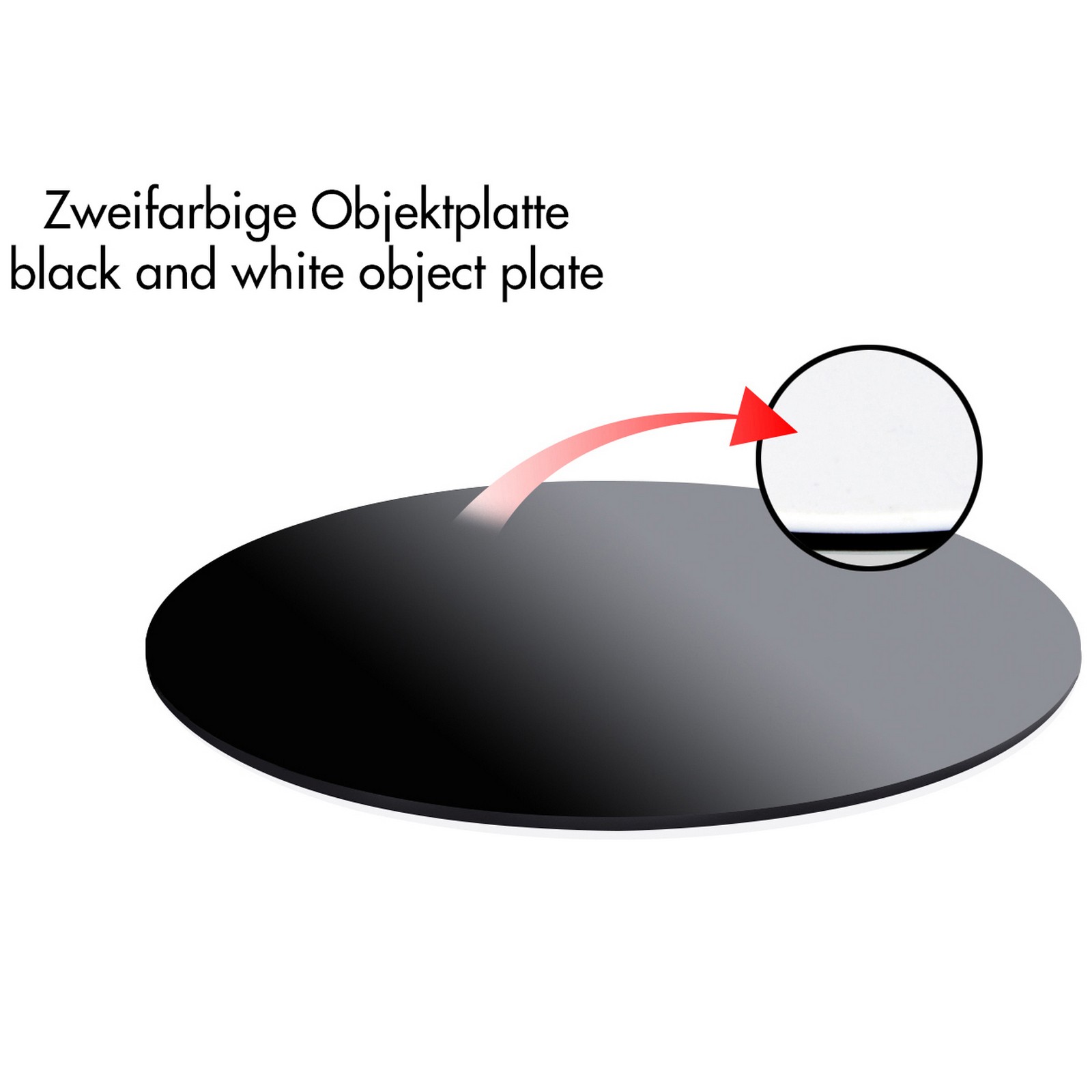 Предметний столик досить великий і має в своїй основі двосторонній чорно-білий диск для забезпечення необхідного контрасту при спостереженні світлих і темних об'єктів. Діапазону робочого ходу цілком вистачає для того, щоб розглядати об'єкти товщиною до 8 см. Завдяки широкій основі і важкому металевому корпусу мікроскоп стійкий і практично не допускає мікровібрацій при спостереженнях.