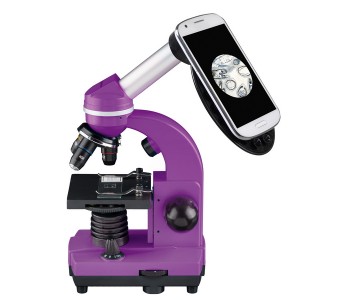 Максимум збільшення і нові яскраві кольори виділяють мікроскопи Bresser Biolux SEL з маси інших мікроскопів. Bresser Biolux SEL 40x-1600x Purple (смартфон-адаптер) - це добре укомплектована модель бюджетного мікроскопа, забезпечена широким набором аксесуарів, а також адаптером планшета або смартфона, який забезпечить зйомку результатів спостережень за допомогою камери Вашого портативного пристрою, або спостереження зразка з дисплея пристрою у реальному часі. Таким чином мікроскоп безумовно буде цікавий і дітям і підліткам.