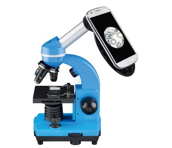 Максимум збільшення і нові яскраві кольори виділяють мікроскопи Bresser Biolux SEL з маси інших мікроскопів. Bresser Biolux SEL 40x-1600x Blue (смартфон-адаптер) - це добре укомплектована модель бюджетного мікроскопа, забезпечена широким набором аксесуарів, а також адаптером планшета або смартфона, який забезпечить зйомку результатів спостережень за допомогою камери Вашого портативного пристрою, або спостереження зразка з дисплея пристрою у реальному часі. Таким чином мікроскоп безумовно буде цікавий і дітям і підліткам.