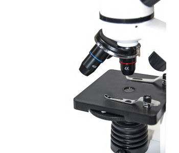 Комбінація широкоугольного окуляра і трьох об'єктивів забезпечує збільшення в діапазоні від 40 до 400 крат. Всі оптичні елементи (об'єктиви, окуляри і конденсор) виконані зі скла. Ахроматические об'єктиви мають покриття, що просвітлює і забезпечують контрастне і рівномірно чітке зображення здебільшого поля зору.