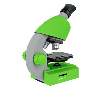 Bresser Junior 40x-640x являє собою сучасний мікроскоп для дитячого розвитку. Мікроскоп укомплектований великою кількістю різних аксесуарів, готових слайдів для перегляду, оснащений револьверної головкою з трьома об'єктивами, що дають в комплексі з зум-окуляром збільшення до 640х.