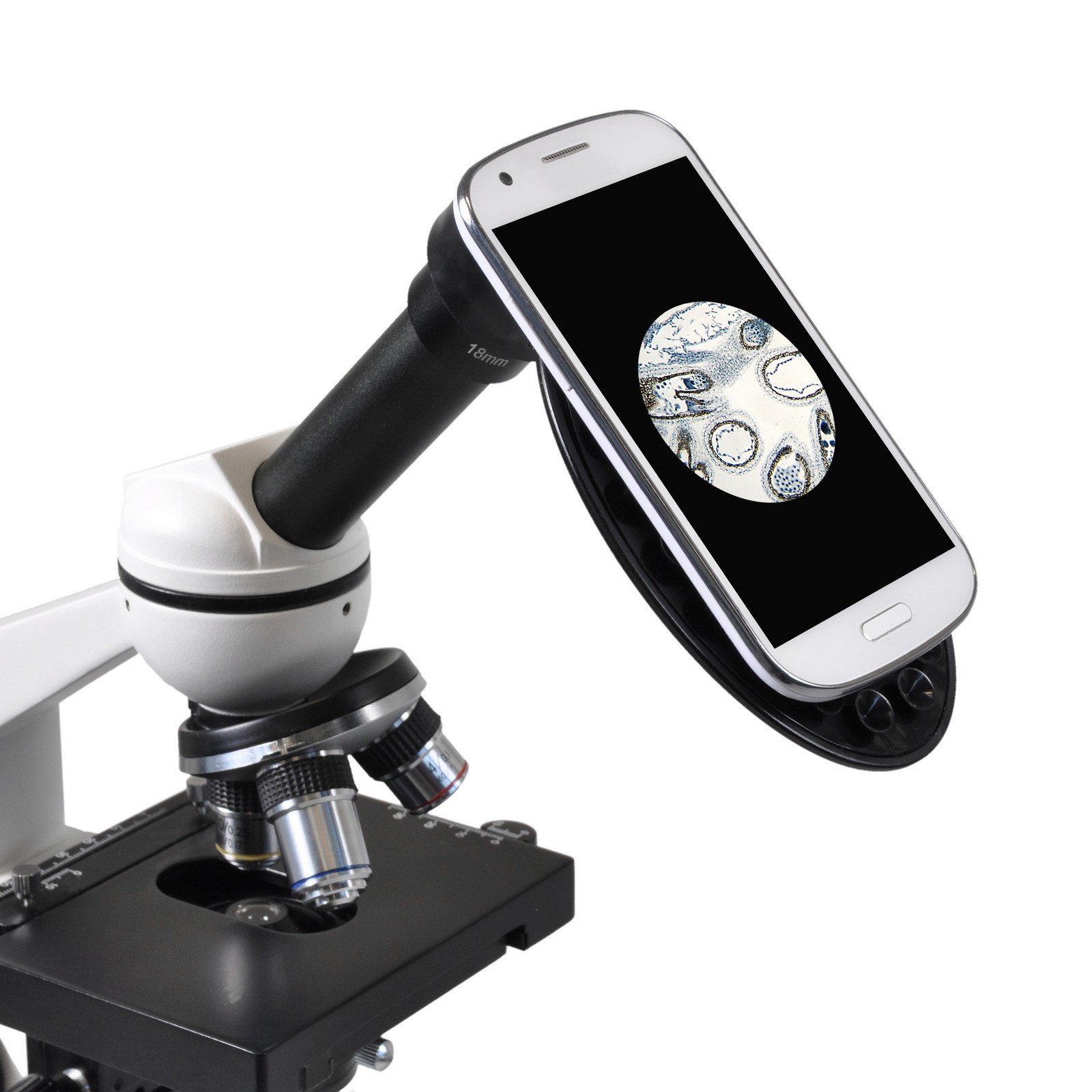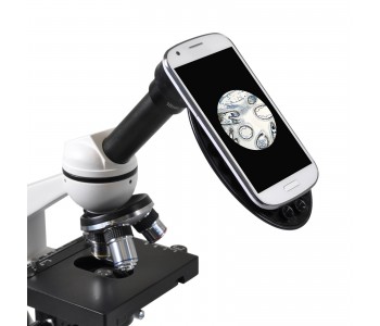 Револьверна головка має посадочні гнізда для трьох об'єктивів стандарту DIN 4х, 10х і 40х (підпружинений) . пара окулярів, що поставляються в комплекті, виконана по ширококутної схемою і надає широке поле зору. При необхідності Отримання великих збільшень мікроскоп може бути оснащений додатковими окулярами і об'єктивами.