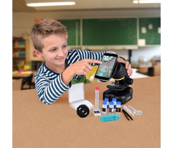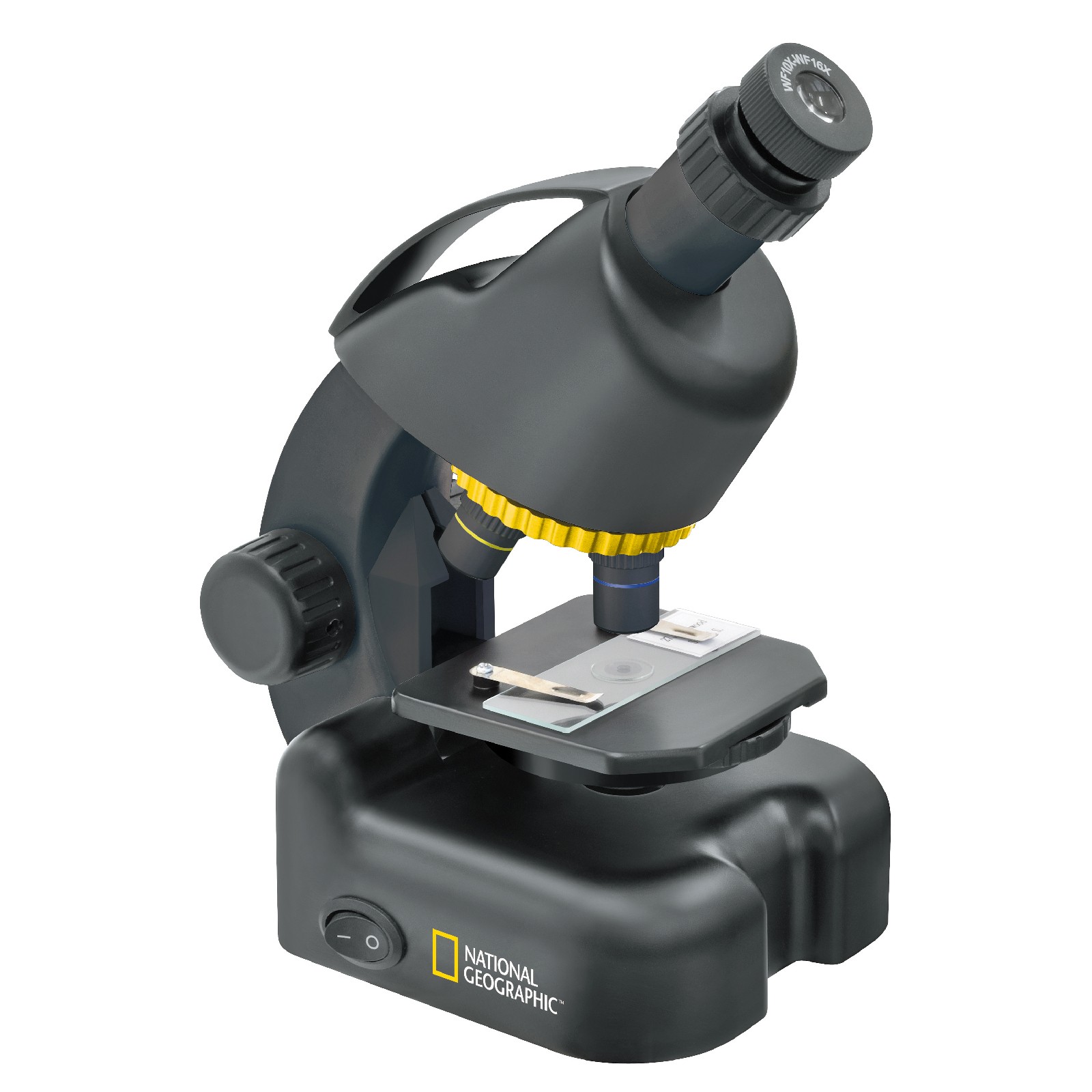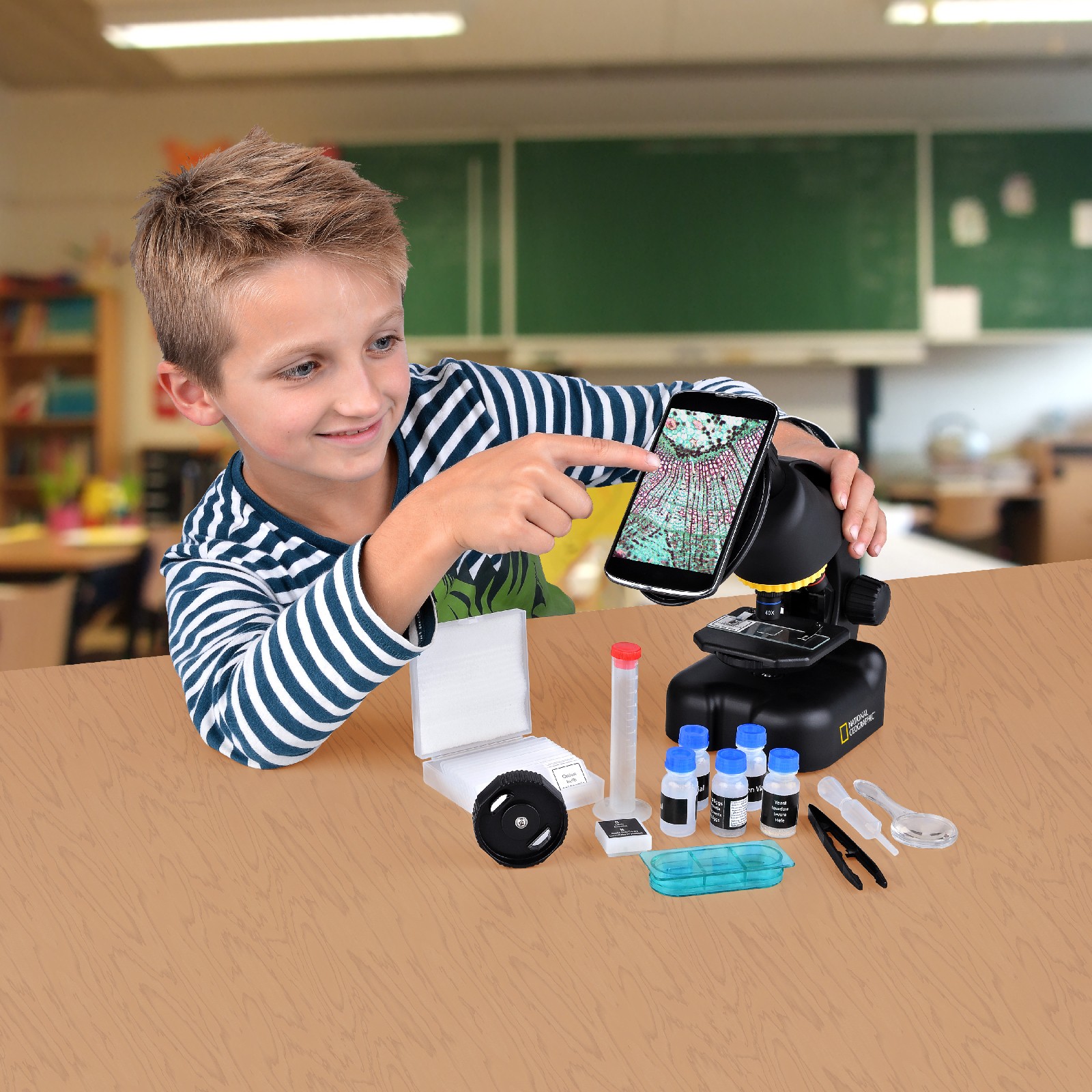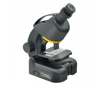 National Geographic 40x-640x (з адаптером для смартфона) являє собою сучасний мікроскоп для дитячого розвитку. Мікроскоп укомплектований великою кількістю різних аксесуарів, готових слайдів для перегляду, оснащений револьверної головкою з трьома об'єктивами, що дають в комплексі з зум-окуляром збільшення до 640х. Відмінною особливістю даного мікроскопа є наявність адаптер для камери смартфона. За допомогою адаптера для смартфона, що йде в комплекті з мікроскопом, легко фотографувати об'єкти спостережень на камеру вашого смартфона.