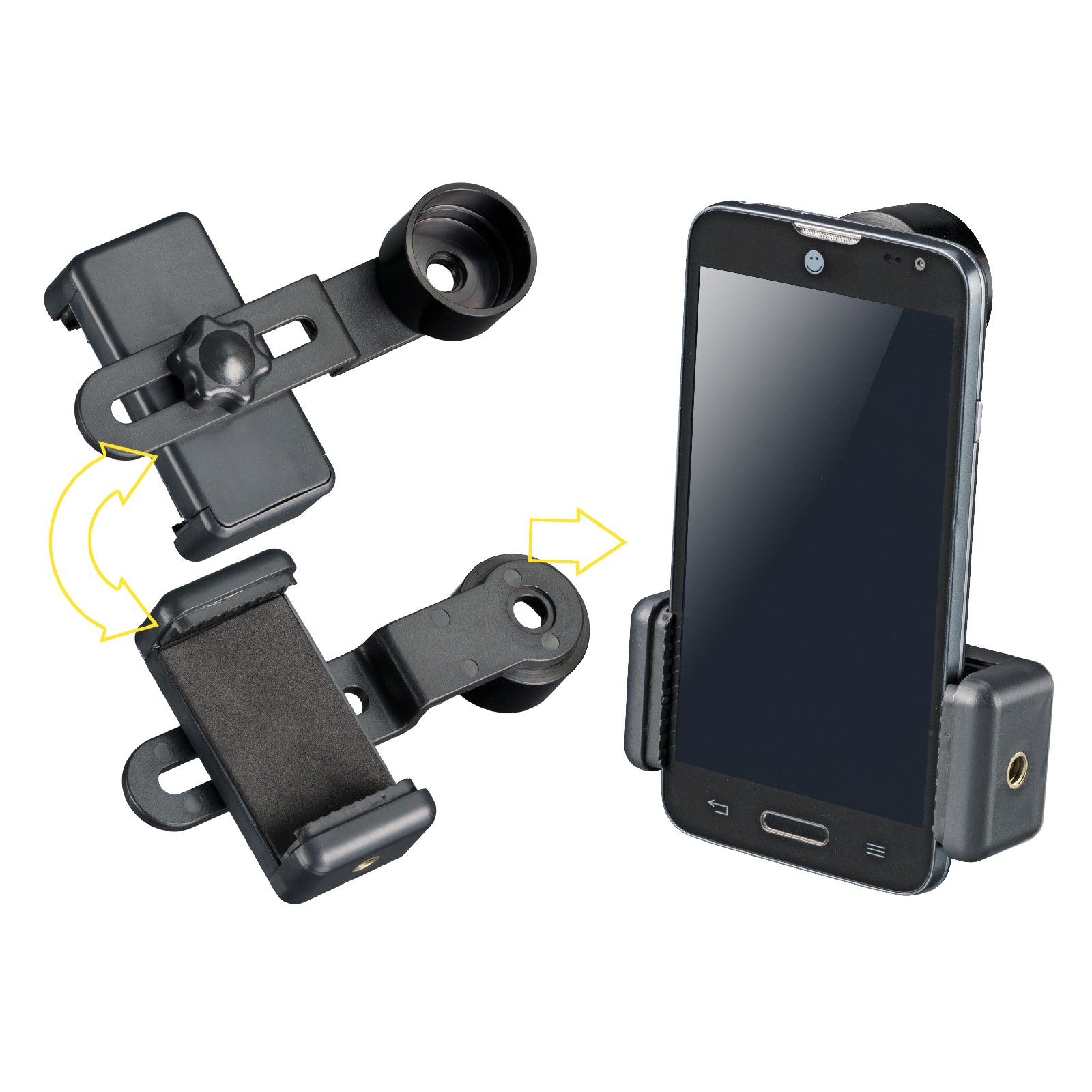В комплектацію входить адаптер для камери смартфона. Адаптер кріпиться на тубусі мікроскопа і дозволяє проводити фото і відеозйомку основною камерою смартфона в незалежності від її місця розташування. Новий смартфон-адаптер тепер дозволяє надійно закріпити смартфон, незалежно від того, чи є тильна поверхню гаджета гладкою або рифленою.