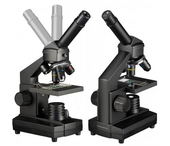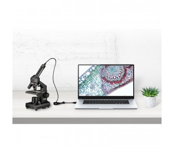 Дана модель поставляється з широким набором аксесуарів, об'єктивів і окулярів, необхідних для старту спостережень, що дає можливість відразу зануритися в настільки цікавий і захоплюючий мікросвіт. Зручний і легкий пластиковий кейс призначений для зберігання і транспортування мікроскопа і аксесуарів та супутніх товарів.